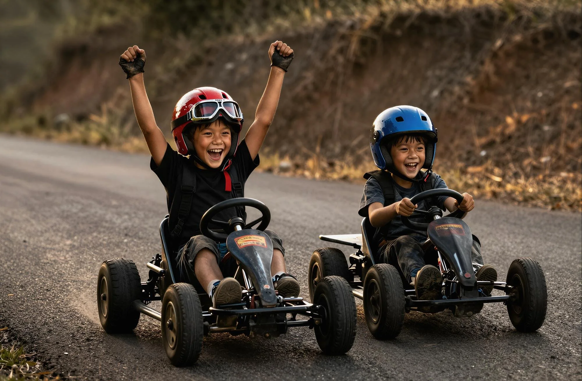 Start your engines! Get behind the wheel of a gas fueled go-karts and fasten your seat belts. Single and double seat karts assure everyone enjoys full-throttle fun! The incredible race way is your playground for incredible fun!